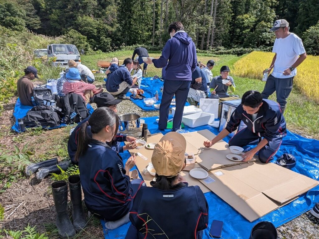 作業後は、”いっぷくタイム”弊社の新米のおむすび、漬物、豚汁、デザートには地元で採れた和梨や葡萄♪とっても美味しくて空腹も心も満たされ幸せな時間でした(*´▽`*)