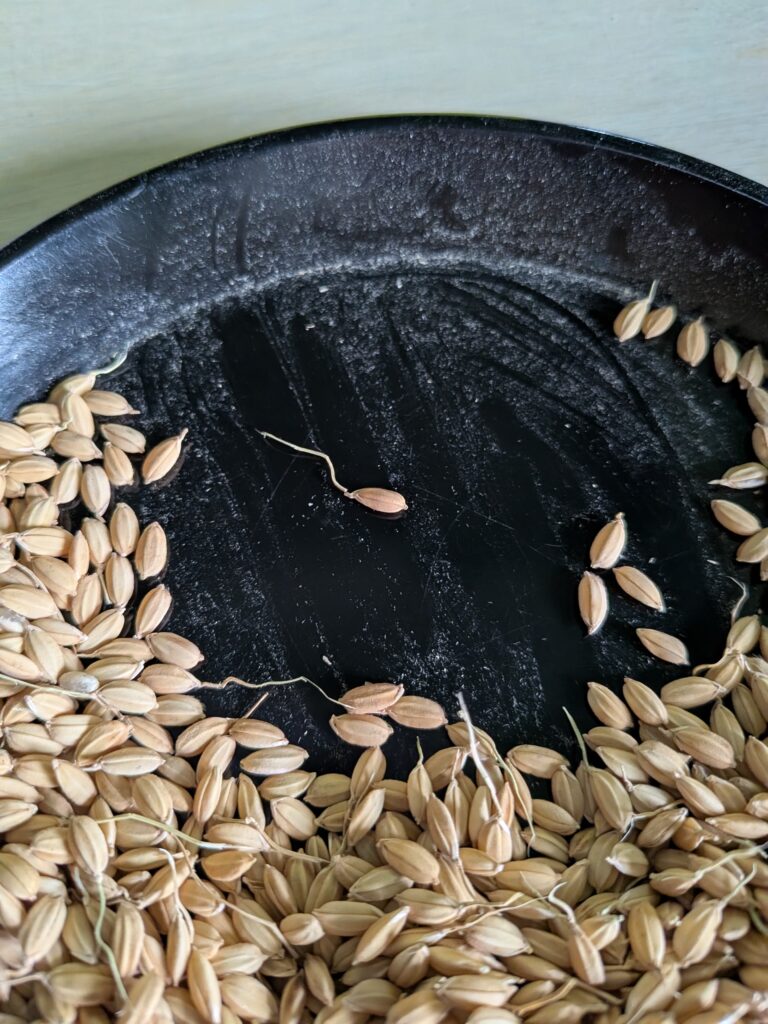 昨年の稲刈りの際に取り置いていた「籾」です。このひげのような「のぎ」を取る作業をしました!のぎを取った籾は種として来月、撒きたいと思います。私にとっては初めての試みなので、たくさん芽が出てくれるといいな(^^)と思っています。楽しみです♪